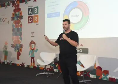Durante o Festival ABCR 2024, diversos negócios e projetos tiveram a oportunidade de apresentar suas soluções e serviços focados no terceiro setor em estandes. A startup apoIAr, por exemplo, ofereceu uma experiência inovadora aos participantes. Através de um cadastro, os visitantes inseriram informações sobre suas organizações em uma plataforma de IA que gerou uma música inédita dedicada a cada organização, combinando tecnologia e criatividade para fortalecer a identidade institucional.